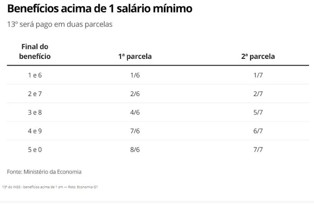 As parcelas do 13º serão pagas junto com o benefício de cada mês.