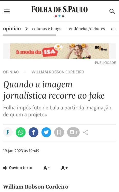 William escreveu um texto para o blog dele e para a coluna que assina no portal 247 com o título “Quando a imagem jornalística recorre ao fake” em que critica a técnica de edição chamada de “múltipla exposição”, usada pela fotojornalista Gabriela Biló que retratou a imagem do presidente Lula por trás de um vidro estilhaçado sendo que a imagem é a junção de duas fotos tiradas em momentos diferentes.