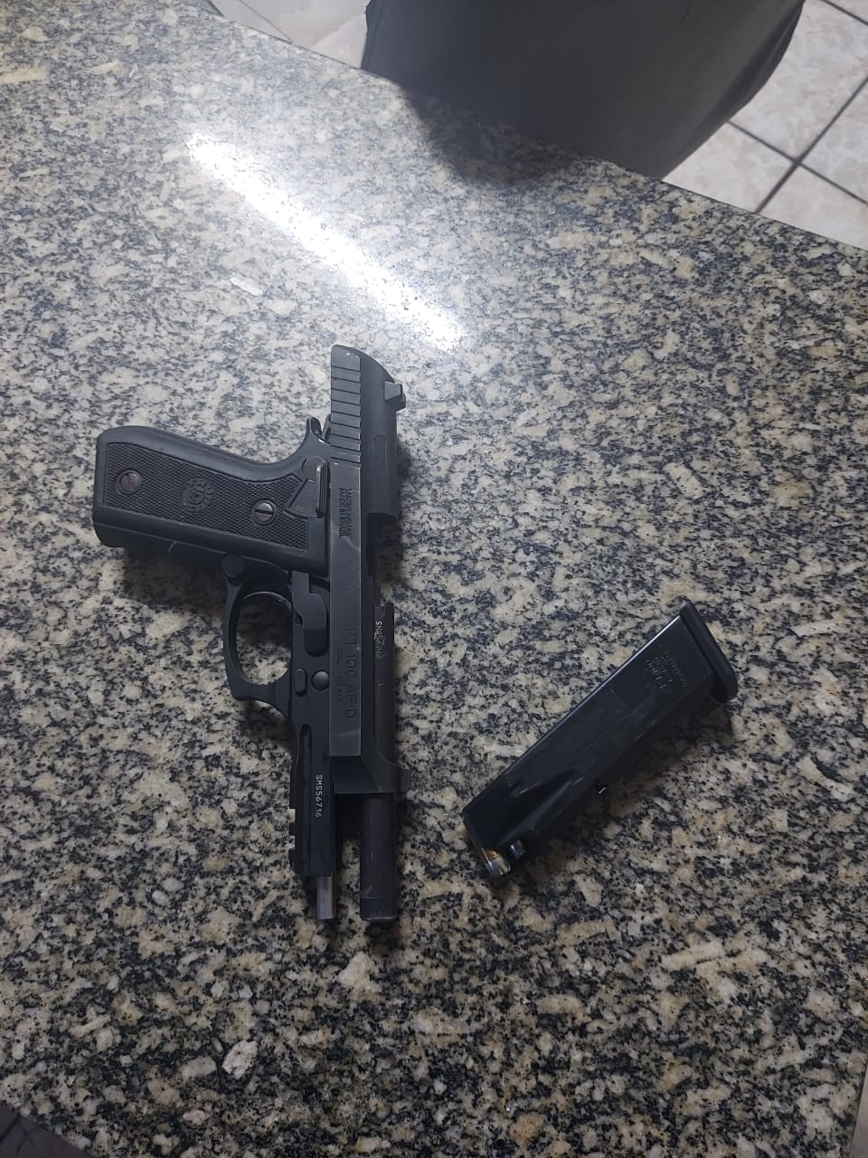 Durante a ocorrência, uma pistola calibre .40 foi apreendida.