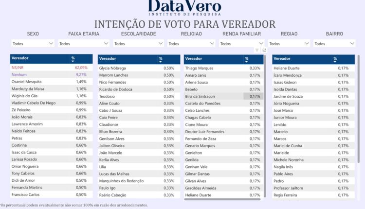 A pesquisa, do Instituto DataVero tem nível de confiança de 95% e margem de erro de 3 pontos percentuais. Ela foi registrada em 10/04/2024 sob o número de identificação: TSE nº RN 00041/2024.