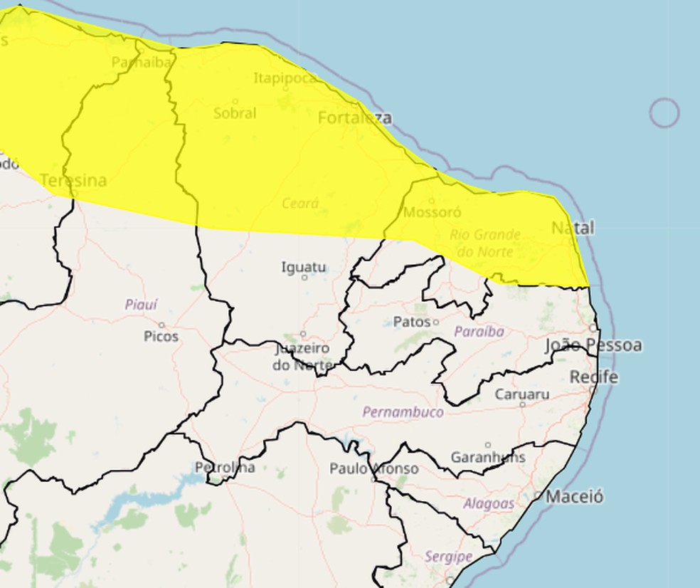 O Instituto Nacional de Meteorologia (Inmet) emitiu um alerta de chuvas intensas para 116 cidades do Rio Grande do Norte, incluindo a capital Natal. O alerta vale até 10h desta sexta-feira (4).