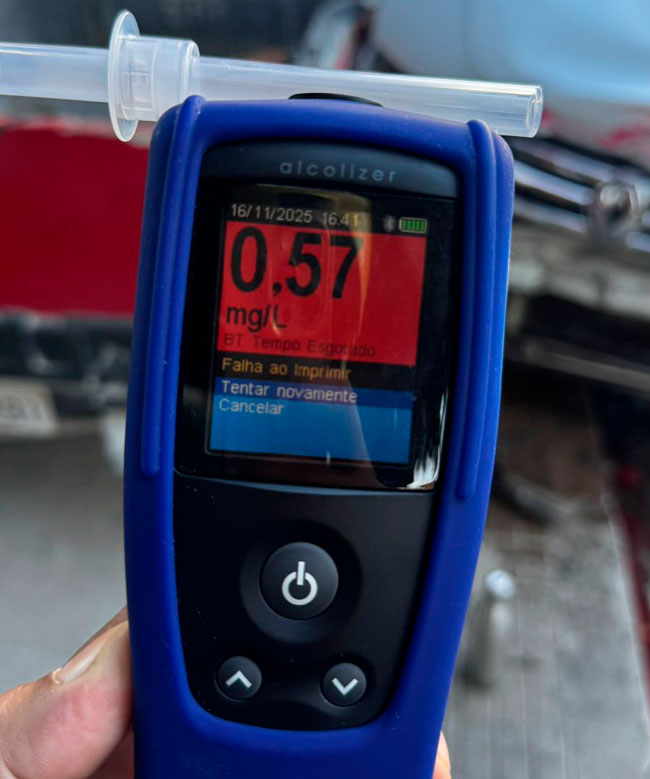O condutor e a passageira do veículo Fiat Strada, causador do acidente não precisaram receber atendimento do SAMU. o condutor E.S.D.S, foi submetido ao teste do etilômetro o qual o resultado foi 0,57 mg/L, sendo o mesmo conduzido à delegacia de plantão da Polícia Civil, para os procedimentos cabíveis. Os demais condutores o resultado do teste de bafômetro foi 0,00mg/L.
